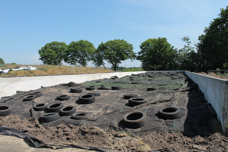 • slechts 14 procent van de stalvloer onderkelderd is en de mest dus grotendeels opgevangen wordt in een bovengrondse mestopslag;